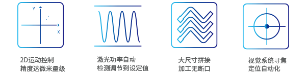 高精度運動控制 / 全自動功率檢調 / 無斷口拼接加工 / 自動化尋焦定位