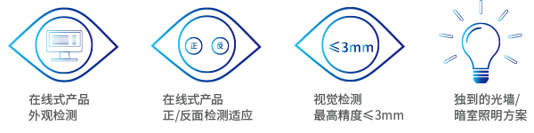 在線式外觀檢測 / 雙面檢測自適應 / NG品自動存儲 / 自主研發暗室照明系統